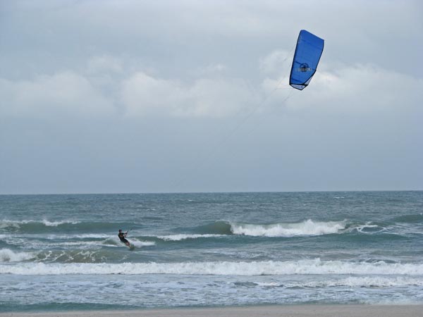 Above: The wind was really strong out of the north and this lone kiteboarder was having a blast. He was catching a lot more waves than the surfers were. |