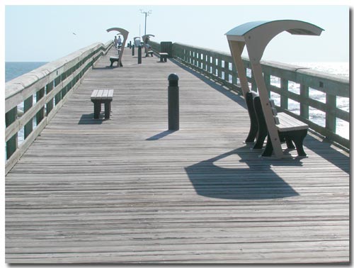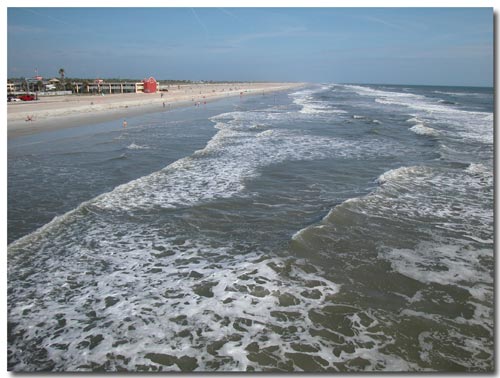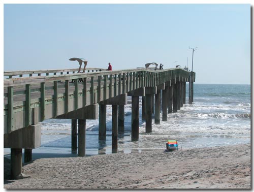 The Saint Augustine beaches are a "must see, " as is the City of St. Augustine. Saint Augustine is located on the Northeast coast of Florida on the Atlantic Ocean, south of Jacksonville. It is easily accessed from I-95, and is only an hour and a half from Orlando. There is a lot to do in St. Augustine, even if you never go near the beach. But who would miss out on the beach? We visited the weekend before Easter, and although traffic was fairly heavy in the City itself and very heavy on US1, traffic on the beaches was light. Our first stop on Saturday morning (After breakfast at "The Bunnery" downtown) was at the St. John's County Fishing Pier at St. Augustine Beach.