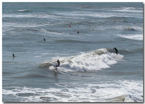 Compared to most of the piers I'm accustomed to on the Gulf coast, this pier is quite tall. The surf was up and there were plenty of surfers in the water. In fact, there was a surfing contest underway on the south side of the pier. Admission is only 50 cents if you just want to walk out onto the pier and enjoy the view. It's well worth it. If you walk north you will soon find yourself in the Anastasia Island Recreation Area where there are no buildings--just complete peace and quiet. Wow! What a great place for a quiet Saturday morning walk. It was quite a contrast to the noise and bustle of downtown St. Augustine. Below are some photos I took on a beautiful morning in March. The water is a bit cool but as you'll see, the temperature is warm enough for bathing suits. |