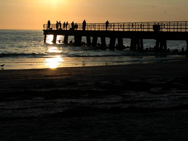 The pier at the Manatee County Public Beach in Holmes Beach was an island landmark for most of my life, but was torn down in 2010 because it had become unsafe. My family stayed on the beach here for a week one summer and I caught my first mackerel off this pier. Took it right home and had it for lunch! As you can see from the photo, the pier was popular with fishermen. It is uncertain if or when a new pier will be built. |