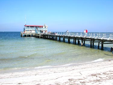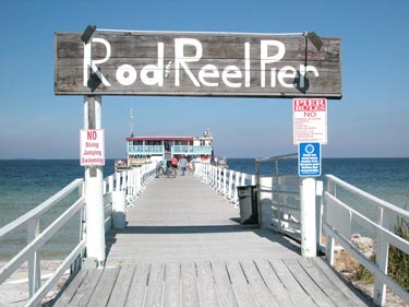 The Rod and Reel Fishing pier is privately owned and is not as long as the City pier. It doesn't have to be as long because deep water is closer to shore at this pier. Both piers are within sight of each other. The Rod and Reel is very close to the north end of the island. There is a restaurant on the second floor of the pier. The Rod and Reel Motel is right next to the pier. All kinds of fish are caught from the piers: trout, redfish, jacks, sheepshead, snapper, grouper, flounder, snook, mackerel and kingfish, shark, etc. Below is another view of the Rod and Reel Pier. Even if you don't catch any fish, it's great just being out on the pier. You can always have a beer and a bite to eat in the restaurant on the second level, or take a walk around the beautiful neighborhood, or just stroll on the beach. |