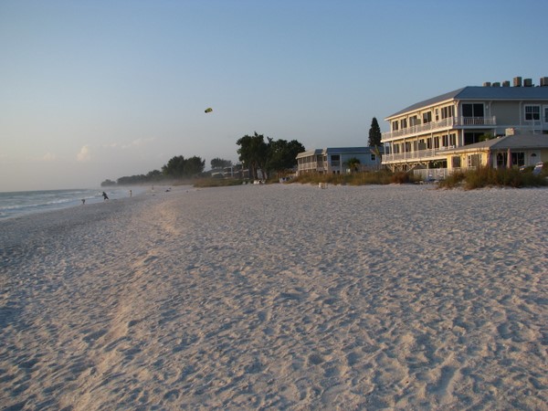 Beach view at 65th Street in Holmes Beach. Looking north towards the Beach Bistro.
