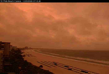 I went to my computer and looked at weatherunderground.com. Sure enough, a very heavy squall line associated with a cold front was right on our doorstep, and nasty, windy weather was upon us. Then I checked out a local beach web cam and managed to capture the above image, which is quite accurate as to our Florida Christmas Red Sky at Morning.
