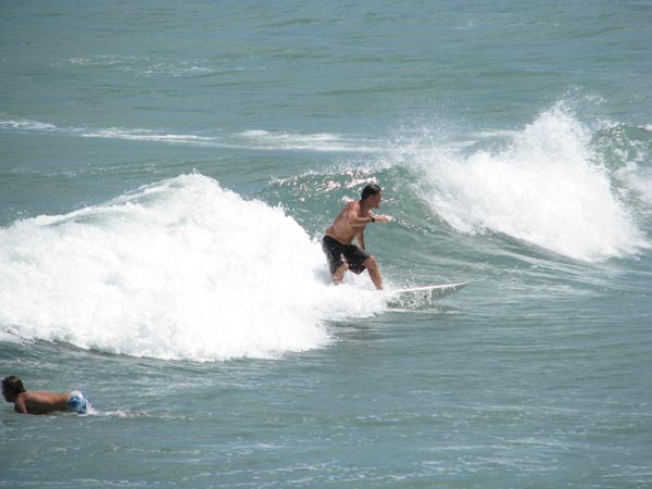 Above: The pier is pretty tall. Gives you a great view of the coast, and of the surfers down below. |