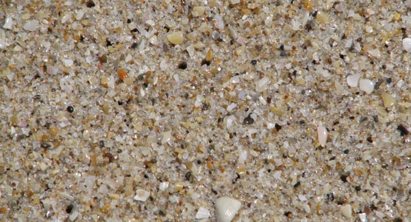 Don't get hung up on white sand. Yes it is wonderful, and one of its best qualities is that it is so reflective that it doesn't get hot, even under the most intense summer sun. But each different type of sand is beautiful and has attractive qualities, from the black sands of Caspersen Beach, to the orange coquina sands of Ormond Beach, to the brown sands of Playalinda. Below are some photos of various types of sand that are representative of those beaches. Keep in mind that on every beach the sand varies considerably. For instance, the sand in the dunes is usually whiter and finer than that found closer to the water. On beaches with lots of broken shell mixed in with the quartz crystals, there are some spots on the beach with lots of shell fragments, and spots with fewer. I'll be adding more and more photos of sand as time goes on. |