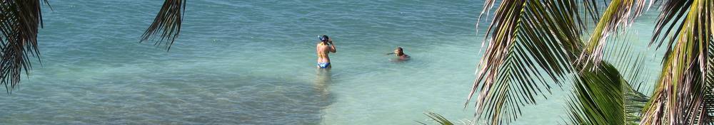 Sandspur Beach is the longest beach in the park. It faces the Atlantic Ocean. There is no surf because the offshore reefs block the swell and the water is very shallow, but the water can get choppy with a strong wind. During calm weather the water is crystal clear and very shallow. Because of the windward exposure, a lot of seaweed tends to wash up on the beach here. The beach has restrooms and covered picnic tables.
