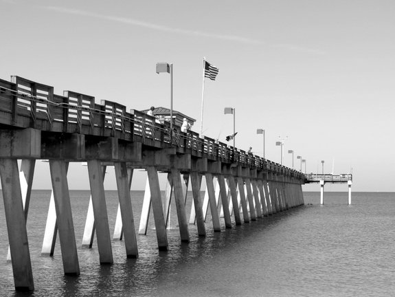 Some very serious fishing takes place on the 700 foot long Venice fishing pier. Papa’s Bait and Snack Shop located out on the pier keeps the fishermen well-supplied from 6 am to 9pm. There is no fee to access the pier which is open 24 hours a day every day of the year, though the beach park is closed from midnight to 6 am. You can rent fishing gear if you need to (or rent a Florida snow shovel to sift the sand for shark teeth). No fishing license is needed to fish from the pier, but if you want to fish from the beach, you’ll need a Florida saltwater fishing license. The pier was originally built in 1966 and has been rebuilt twice since then (1984 and 2004). The pier makes a great foreground for sunset photographs. Get more info at www.VeniceFishingPier.com .