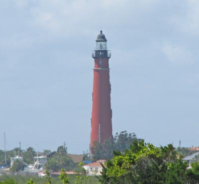 Construction of this 175-foot-tall lighthouse tower began in 1884 and was completed in 1887. It is made of more than one million bricks shipped from Maryland and New York and is an important working lighthouse today. Although it was taken out of service in 1970, it was restored by the Ponce de Leon Inlet Lighthouse Preservation Association and returned to service in 2004, maintained by the museum staff. I was thrilled to climb the 203 steps to the top of the lighthouse, where I got a close-up look at the Fresnel lens, and walked out onto the observation deck surrounding the lens. The breeze was delightful and the view fabulous. I could see the Ponce Inlet jetties, the entire community of Ponce, the beach hotels all the way to Daytona, the northern tip of New Smyrna Beach, including Smyrna Dunes Park, the Indian River, and the Halifax river. I probably stayed up there for half-an-hour. The metal stairs are fairly steep, but there is a landing every twenty steps or so. No need to rush to the top. In addition to the lighthouse, the park has lots of interesting historical exhibits, most of which are restored to their former glory by the museum. If you have any interest in history and artifacts, plan on spending at least 2 or 3 hours in the park. The park also has a gift shop, which you will pass through as you enter the fenced grounds. For more information on the lighthouse, its exhibits, and entrance fees, visit the Ponce de Leon Light Station website. |