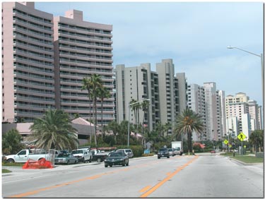Just south of Sand Key Park it's a different ball game. The mountainous condos tower over everything, blotting out the late afternoon sun, and a goodly portion of the sky. Don't even think about trying to see the beach here unless you are staying in one of the condos. There are a couple of beach access points with parking and an easement that allows you to slip between a couple of the condos to access the beach.