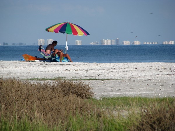 Sanibel beaches are a great place to relax. The hustle and bustle of Fort Myers Beach is far in the distance across San Carlos Bay.